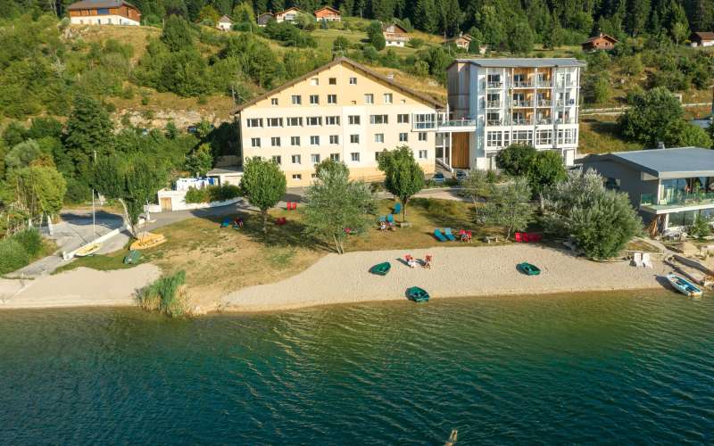 L'hôtel - restaurant propose 12 chambres avec balcon et vue sur le lac ; il dispose également de 2 ascenseurs pour les 3 étages.
