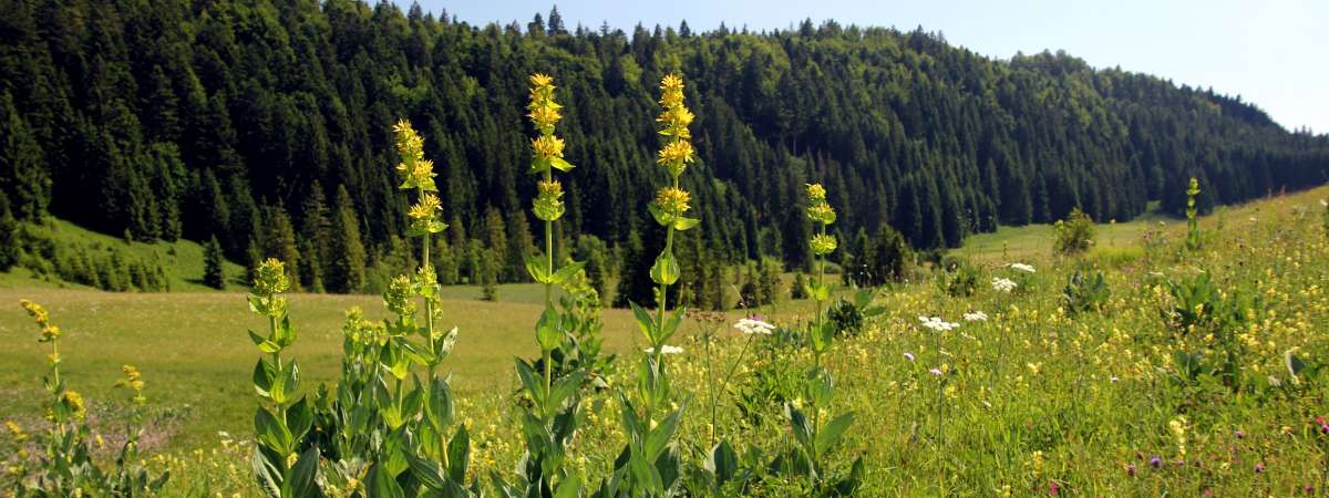 - Par la droite, emprunter l'ancienne piste de ski La Trémontagne, qui vous fera traverser une zone humide bien ouverte avant de passer sous la ligne à haute tension et, en contrebas du Bois de la Joux derrière, redescendre au Chalet du bief Plotet.