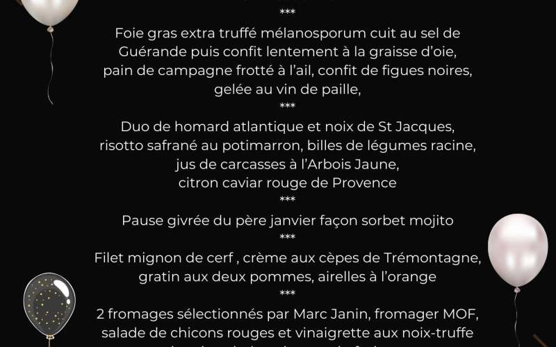 Menu de la saint sylvestre à l’hôtel Restaurant le l'Abbaye