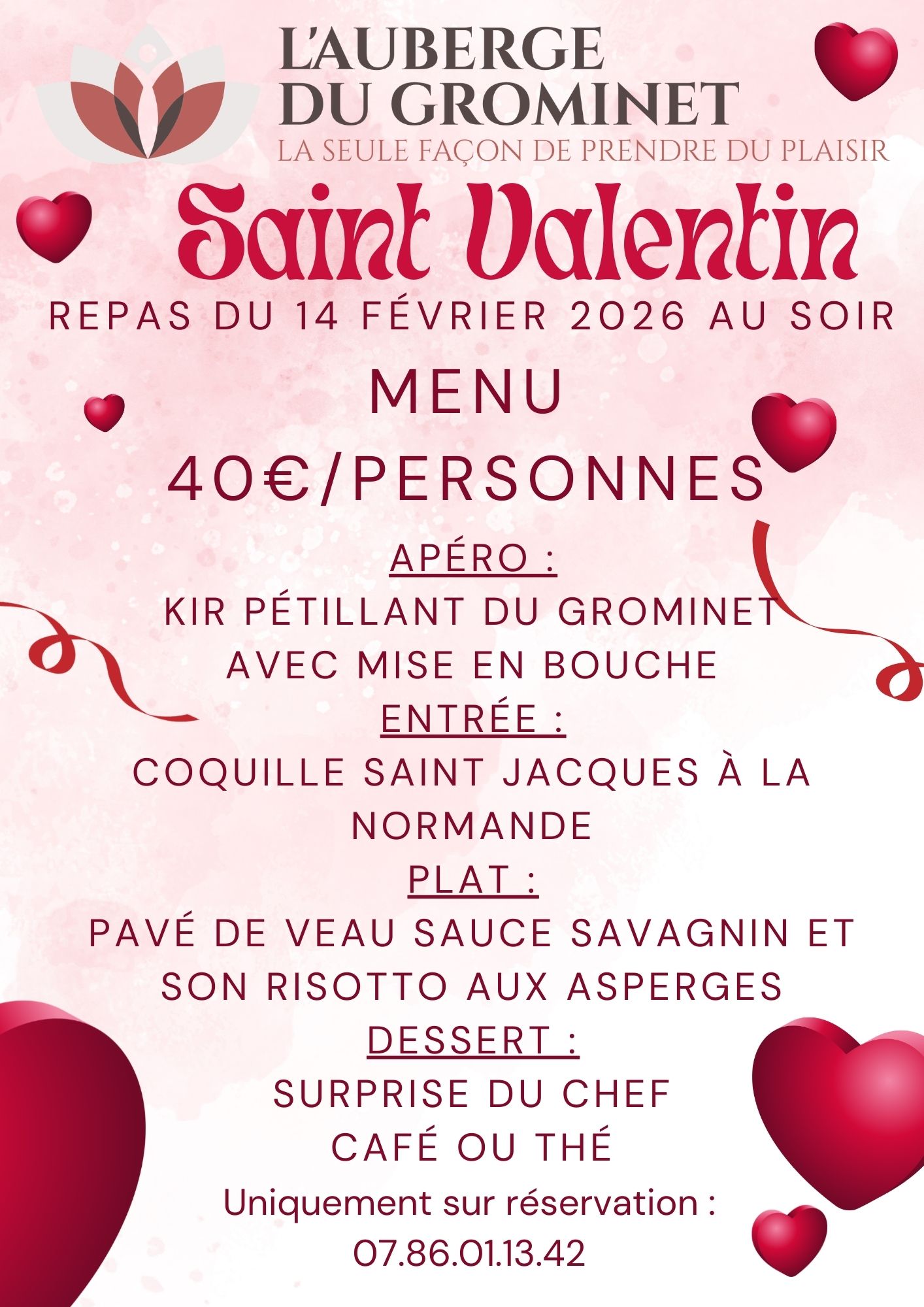 Soirée spéciale Saint Valentin à l'auberge du Grominet à Chaux du Dombief.