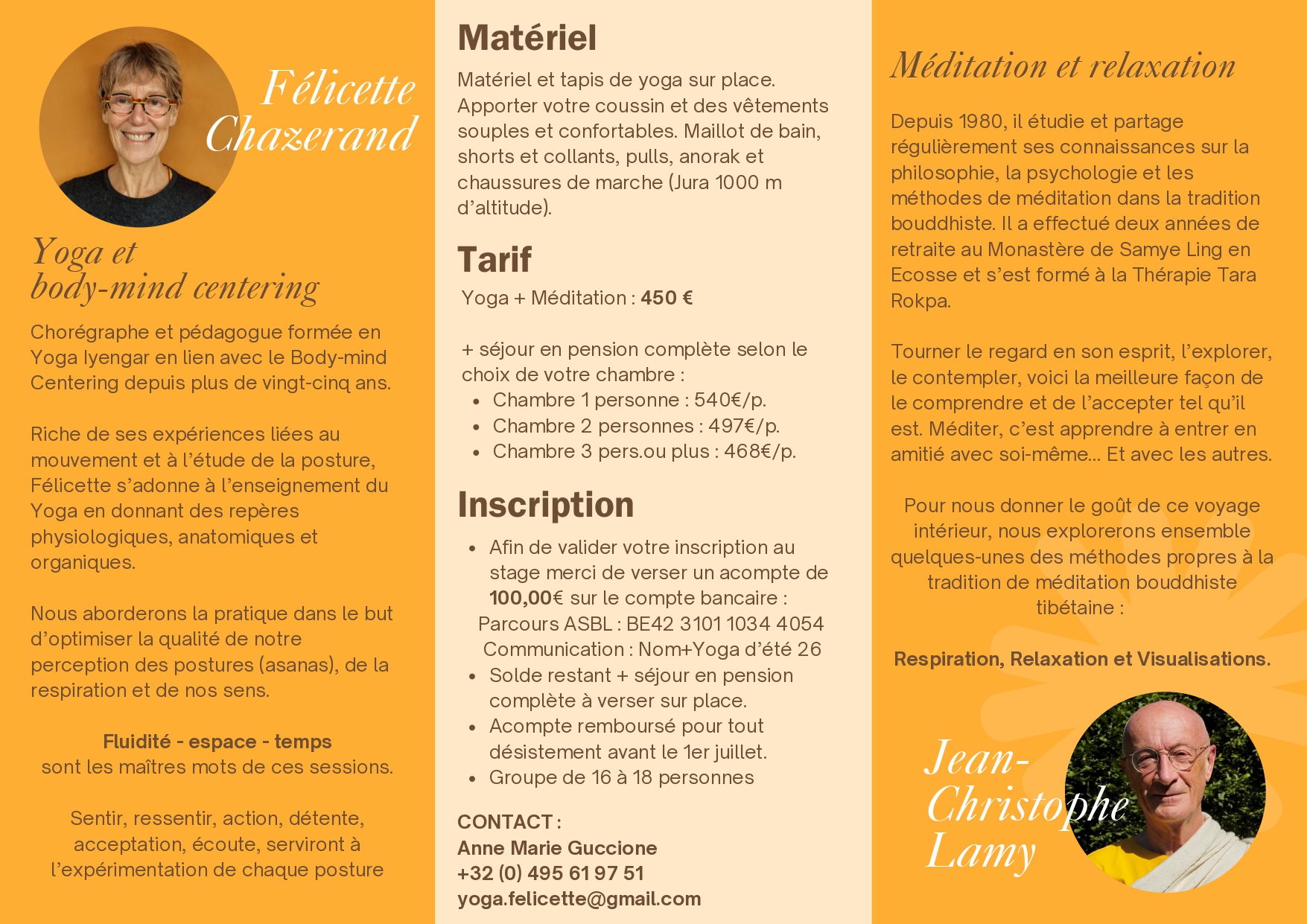 Stage d'été Yoga & méditation au chalet des Cernois à Grande Rivière Château du 18 au 25 juillet 2026, avec Félicette Chazerand et Jean Christophe Lamy, à partir de 468€ (stage + pension complète)