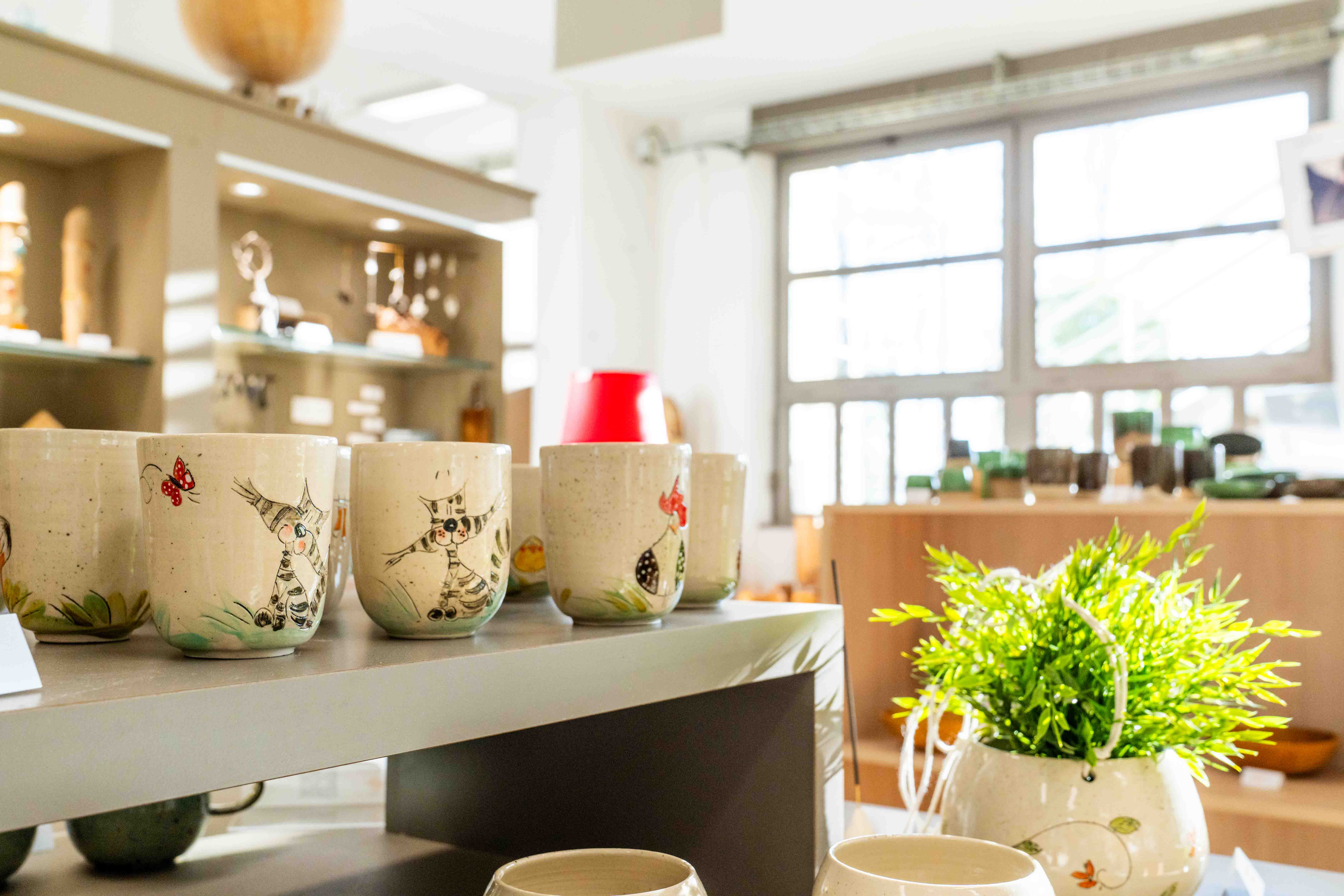 Boutique 100% locale : objets déco, articles en bois, jouets, bijoux (...).